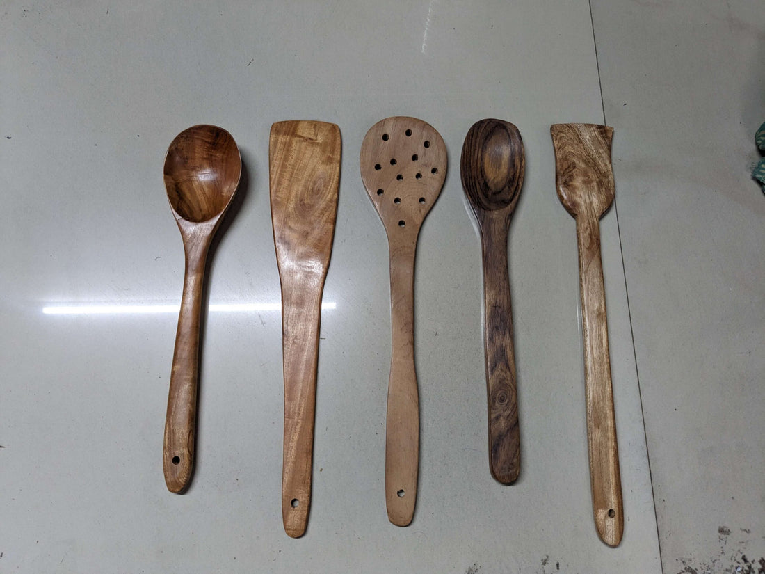 Upgrade your kitchen with our set of 5 handcrafted wooden spoons, perfect for stirring, mixing,...