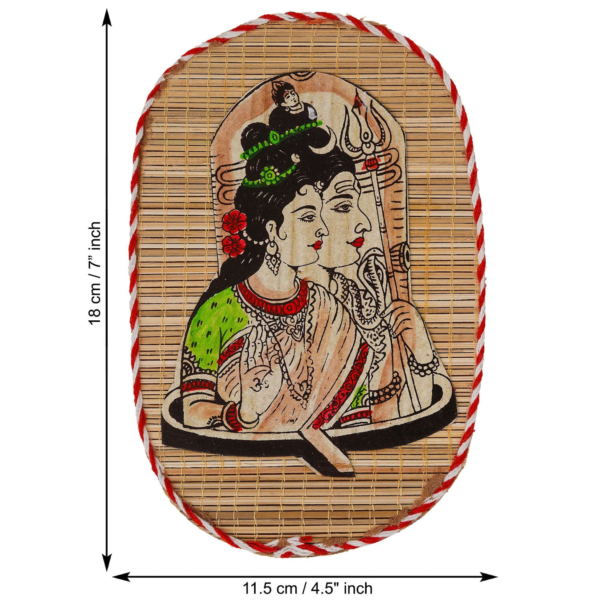 Oval Shaped Design Bamboo Hand Crafted Wall Hangings Of Shiv Sakti For Home Decor