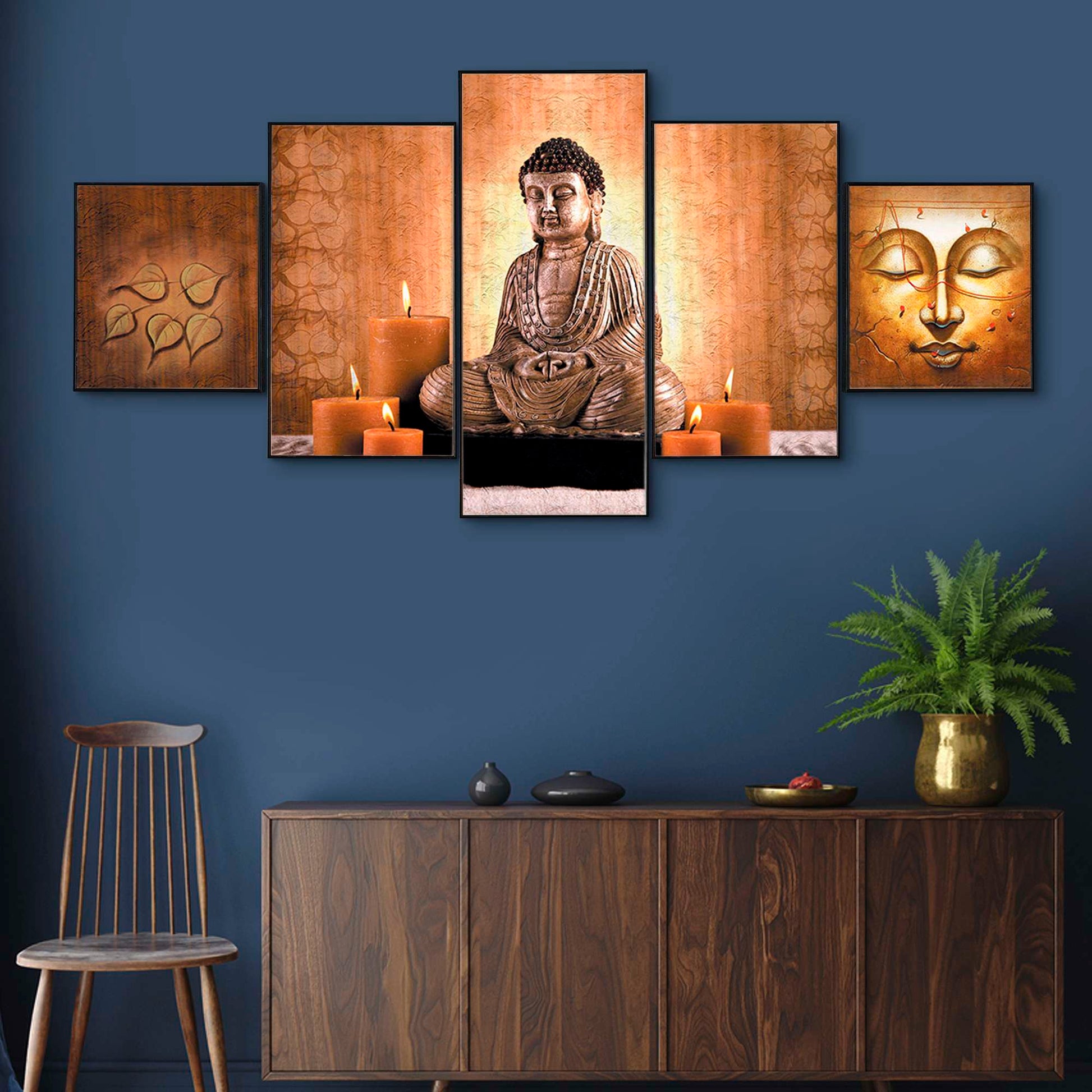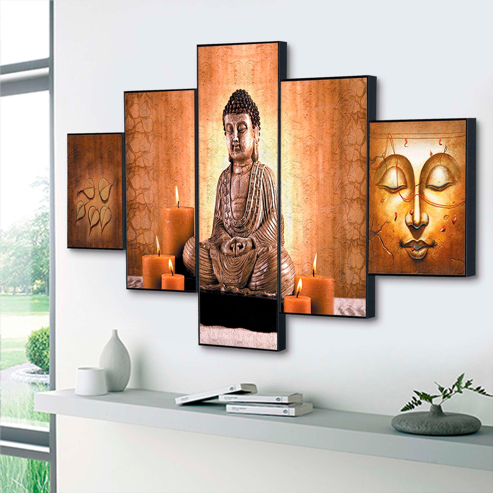 Saumic Craft Presents This Set Of 5 Amazing Paintings For Your Wall . The Painting Will Completely Change The Atmosphere Of The Room Whire It is Placed . The Paintimg Is Made On Heavy Wooden Board And Has A Digital UV Coating On It Which MAKES It Very Easy To Clean . Pricing Of The Product Is Made Very Reasonable From Our Brand As Per The Quality We Are Providing To Our Customers, We Assure That You Will Not Regret Your Purchase, Saumic Craft Is Well Known for Its After Sale Services And In Case If You Feel Some Problem With Any Of Our Product Than You Can Replace It For Free With No Additional Cost . This painting offers a stylish look to your wall as this piece includes three themes it is vastu and also have the essence of abstract and modern art which makes this peice unique and stylish . The 5 pieces wall painting is made with high-quality material, the HD quality print looks fantastic and bright it will not fade easily. With just few simple steps you can mount it to the wall. Thank You For Yor Purchase