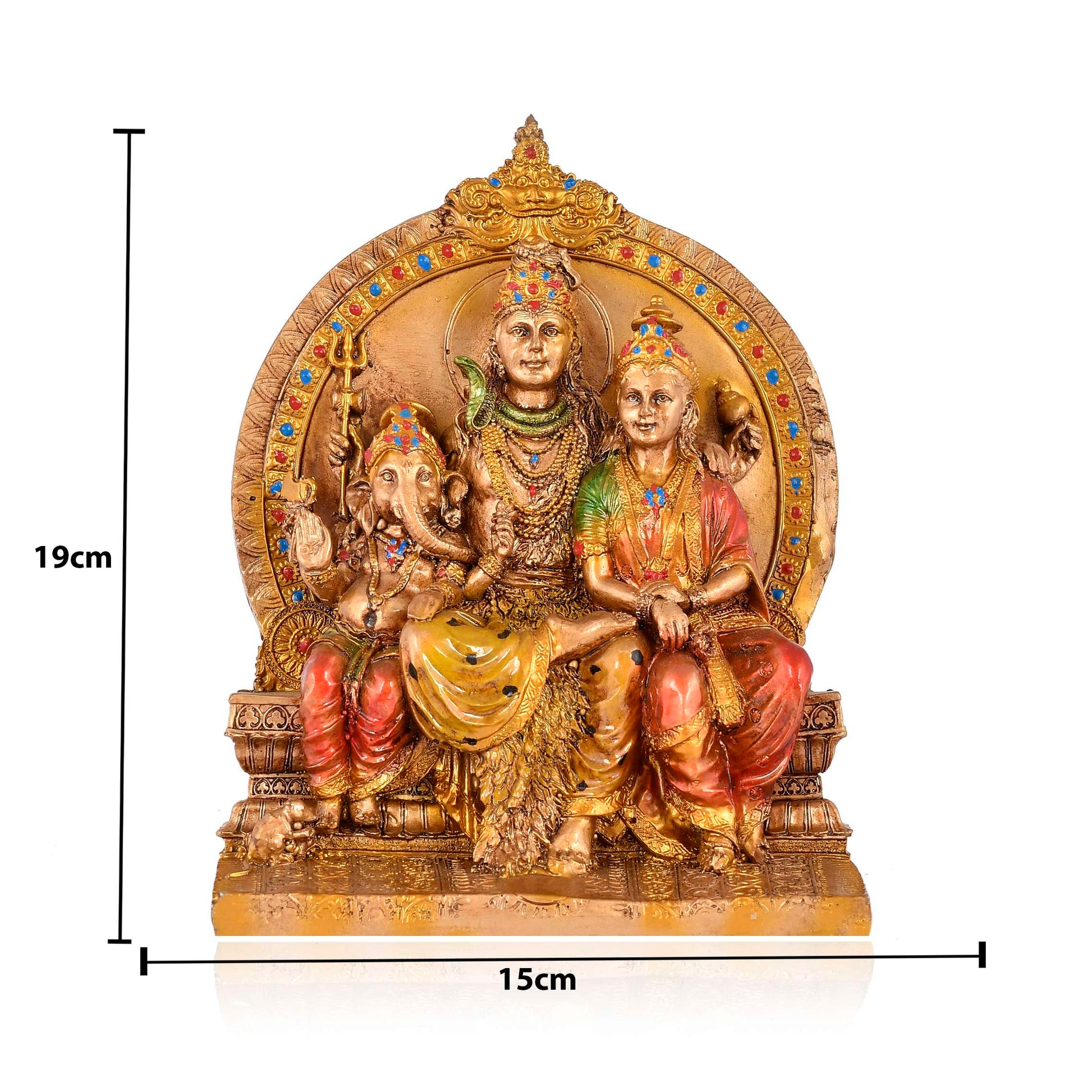 Shiva Family Idol - Shiva Parvati Family , Goddess Parvati Idol , Shiva with Ganesha , Shiv Parivar , Ganesha for altar, Copper Finish Resin Goddess. Lord Shiva is worshipped in India and is a part of trinity along with Lord Brahma and Lord Vishnu. He is the destroyer of evil. He represents purity and truth. Along with his consort Goddess Parvati, he represents the divine union of consciousness and energy. In this picture, we can see Lord Shiva, Goddess Parvati, and their sons Kartikeya and Ganesha. It is considered very auspicious to worship Lord Ganesha before starting any new work. He is said to remove all the obstacles and bring success to those who worship him. Size:- Length- 16CM, Width-8CM, Height-20CM.